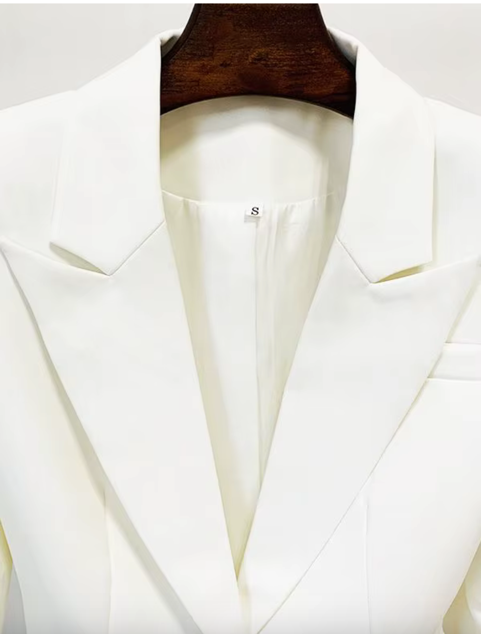 Introducing our stunning white women's pants suit, a perfect blend of bold elegance and modern sophistication. This eye-catching ensemble features a tailored blazer and matching pants, both designed for a sleek and flattering fit. Ideal for making a statement at the office or any special event, this suit combines vibrant color with classic style for a truly unforgettable look.